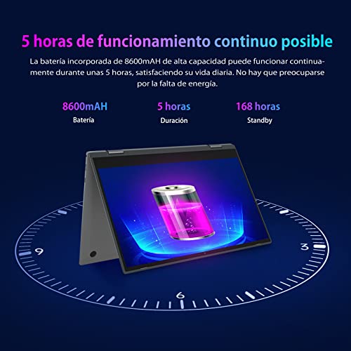 【Portatile touchscreen 2-in-1 convertibile a rotazione libera di 360 gradi】 notebook portatile Morostron con touchscreen convertibile a 360 gradi e consente di passare liberamente dal formato laptop a quello tablet. Con il sistema operativo Windows 11 e le applicazioni per ufficio integrate, è facile utilizzarlo a scuola o in azienda. 8600 mAh possono funzionare per circa 9 ore.