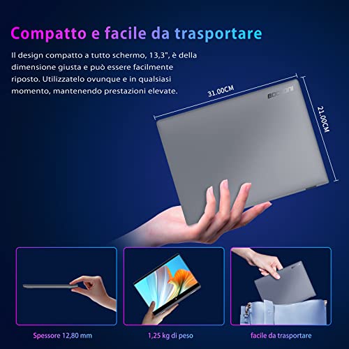 Morostron Computer Portatile 13,3 pollici Touch Screen Pc Portatile Windows 11,16GB RAM 256GB SSD, N5100 Quad core, pannello IPS FHD, WiFi 2.4/5G/AC, Type-C, interamente in metallo, Grigio
