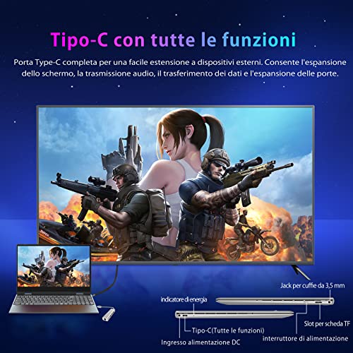 【HUB di tipo C confezionato e buon servizio】 Il computer portatile Windows 11 è dotato di batterie ad alta capacità da 8600 mAh che hanno una durata della batteria in standby più lunga. È super sottile, quindi ha solo uno slot di tipo C completo (nessuno slot USB 3.0), ma è dotato di HUB USB in modo da poter estendere lo slot USB 3.0 e LAN. Hanno anche uno slot DC, uno slot per schede TF e un jack per auricolari.