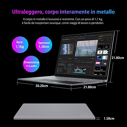 【Pannello 3K 3000 * 2000 Full size】 Schermo FHD IPS antiriflesso da 13,5 pollici 3000 * 2000, la razione dello schermo 3: 2 offre un angolo chiaro e ampio con un'esperienza visiva confortevole. Tastiera full-size e grande touch pad, offrono un tocco fluido e un'esperienza operativa da 13,5 pollici con una dimensione adatta e confortevole. Con il design più leggero e sottile (peso 2,4 libbre e spessore inferiore a 0,6 pollici).