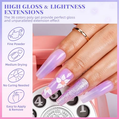Morovan kit unghie gel completo - 36 colori di poly gel unghie kit extension gel con glitter poly gel colors 15ml kit unghie per tutte le stagioni poly gel kit salone di design fai da te a casa