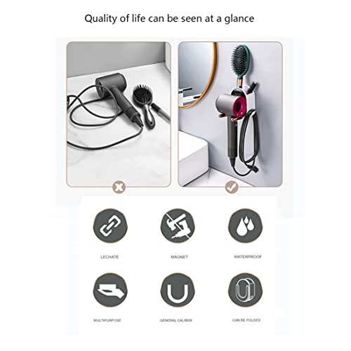Morpape Supporto per asciugacapelli, Senza Foratura, Pieghevole, portaoggetti a Parete, Accessori per Il Bagno, Organizer per Il Bagno, con Pratico Supporto per Cavi, (Verde Scuro)