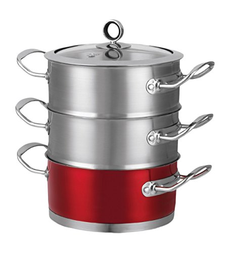 18 cm grande scaffale 3 vaporiera in acciaio inossidabile spazzolato in rosso metallizzato