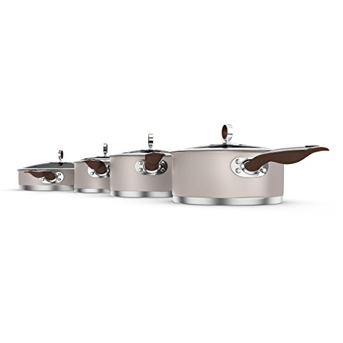 Morphy Richards Set di pentole, 4 Pezzi, Colore Sabbia, Acciaio Inossidabile, Pebble, 30.5 x 48.5 x 17 cm