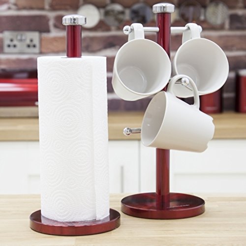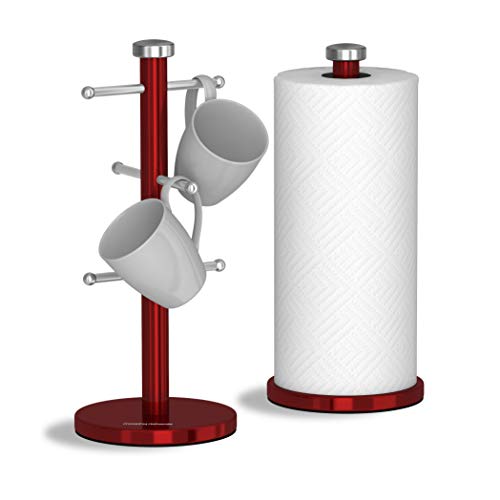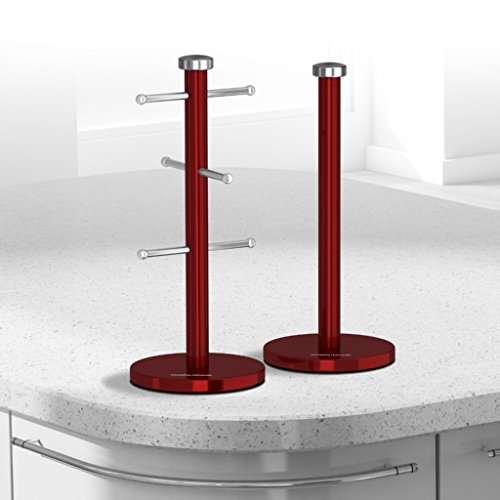 Morphy Richards, set porta tazze e porta rotolo di carta, acciaio INOX, set da 6, Red