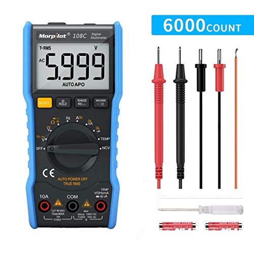 Morpilot Multimetro Digitale TRMS 6000 Conti Torcia, Ohmetri Auto Misurazione Tester NCV Tascabile, Ampere Tester Precisi per Temperatura Tensione AC/DC Volt Resistenza LCD