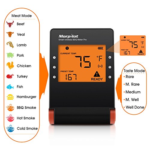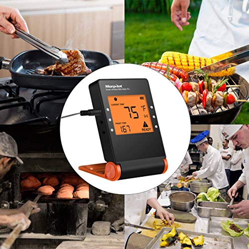 Morpilot Termometro Cucina Bluetooth 4 Sonde in Inox, Termometro Barbecue BBQ Display LCD, Lavoro con App,Termometro Forno Professionale per Misurare Temperatura Barbecue Grilling Carne Acqua