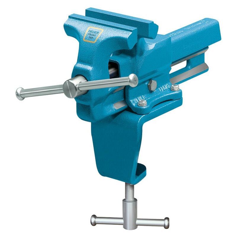 Interamente in acciaio, forgiate − garantite e indistruttibili. Apertura anteriore. Con ganasce stringitubo sotto le normali ganasce. Asta robusta con filettatura trapezoidale a due principi per apertura e chiusura rapida delle ganasce. Chiave per asta filettata zincata con anelli di sicurezza ribaditi in acciaio. Asta filettata e guide protette dalle impurità. Guida prismatica bilaterale regolabile. Con prolunga dell'incudine rinforzata per lavori di allineamento e rifilatura. Ganasce scanalate e accuratamente temprate in superficie, non intercambiabili. Morsetto per piani di lavoro con spessore di 10 - 60 mm. Uso: Per il serraggio sui piani di lavoro. Verniciatura: Termoverniciati blu, a effetto martellato. Dati tecnici Tipo di prodotto Morsa parallela Le ganasce stringitubo serrano i tubi con ⌀ esterno, Zoll 3/8 − 1 Serie Heuer Front Materiale Acciaio forgiato a stampo Peso, kg 5 Campo di serraggio, mm 10 - 60 Direzione apertura Apertura anteriore Larghezza ganasce, mm 100