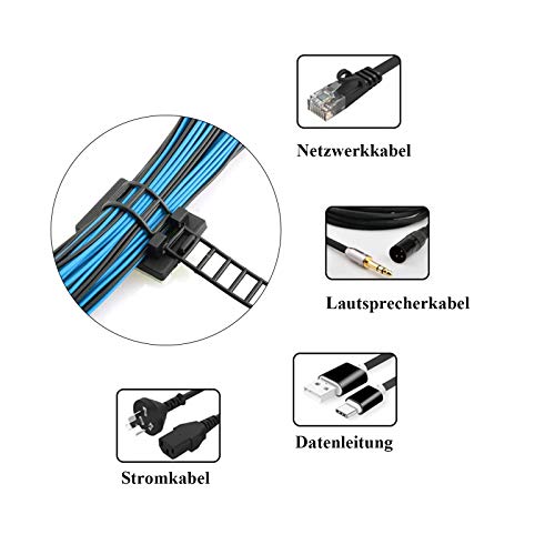 N/H Morsetti per cavi, 50 pezzi, regolabili e autoadesivi, 3 m, clip per cavi, clip da parete per la gestione dei cavi per la casa e lufficio, (nero)