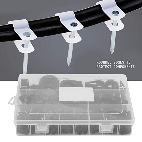 Morsetti per cavi di tipo R, Fydun 200 pezzi Nylon Plastica clip di fissaggio Pinze Pinze assortite Scatola per kit di cavi Kit di fissaggio Assortimento di cavi (nero)