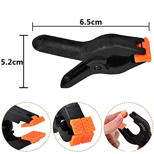 【Materiale】 Questi morsetti sono realizzati in nylon rinforzato e plastica che hanno reso la costruzione più stabile. I morsetti si adattano al pezzo grazie alle ganasce mobili. I cuscinetti morbidi e resistenti possono essere regolati per proteggere le superfici sottili.
