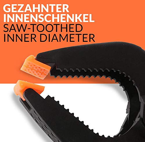 FISSAGGIO SICURO: Grazie alle ganasce mobili del morsetto, alle potenti molle e alle impugnature antiscivolo, tutto è fissato in modo sicuro. Le morse sono adatte per utenti destri e mancini.