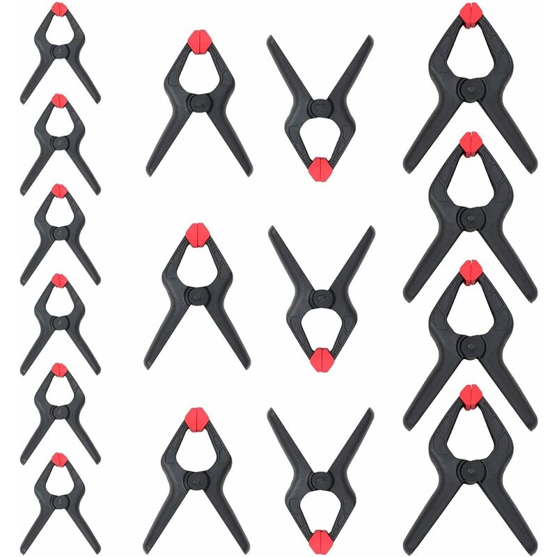 Set di morsetti a molla multifunzionali in plastica per laboratorio fotografico in legno da 16 pezzi Design ergonomico Qualità forte e durevole Stile innovativo e popolare Caratteristica distintiva del marchio ha ottenuto il riconoscimento mondiale Incluso: 6 morsetti da 35 mm, 6 morsetti da 45 mm e 4 morsetti da 60 mm < ul > Fatto di qualità nylon, più robusto e durevole Classica combinazione di colori NERO e ROSSO, semplice e carina Machoires dentelées avec placchette souples rotatives protègent la surface des pièces d'ouvrage Poignée ergonomique apporte une expérience confortevole, ça vous aide à economiser la force DETTAGLI DES PINCES RESSORTS Fixer le bois Fixer la photo Fixer le rideau