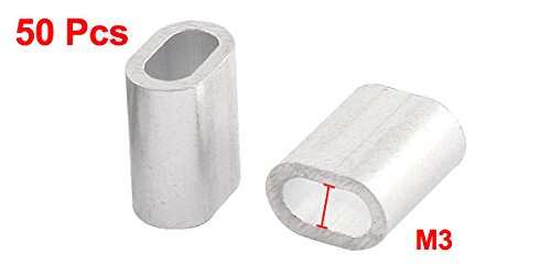 Morsetti ovali in alluminio con guaine per clip per pressatura di fune metallica da 3 mm, 50 pezzi