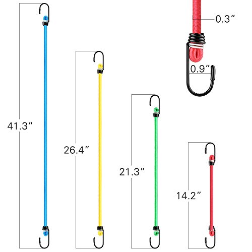 ◆ PROTEZIONE DELLA SICUREZZA: Ogni cintura di gomma ha 2 robusti ganci di metallo con protezione in gomma ciascuno, protezione degli angoli con ganci di presa in gomma sono molto robusti, per contrastare il rischio di lesioni alle persone e danni al carico.
