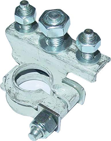 Morsetto per batteria polo negativo, in ottone, stagnato, con dadi, 3 punti di serraggio, 2 x M61 x M8, D10M
