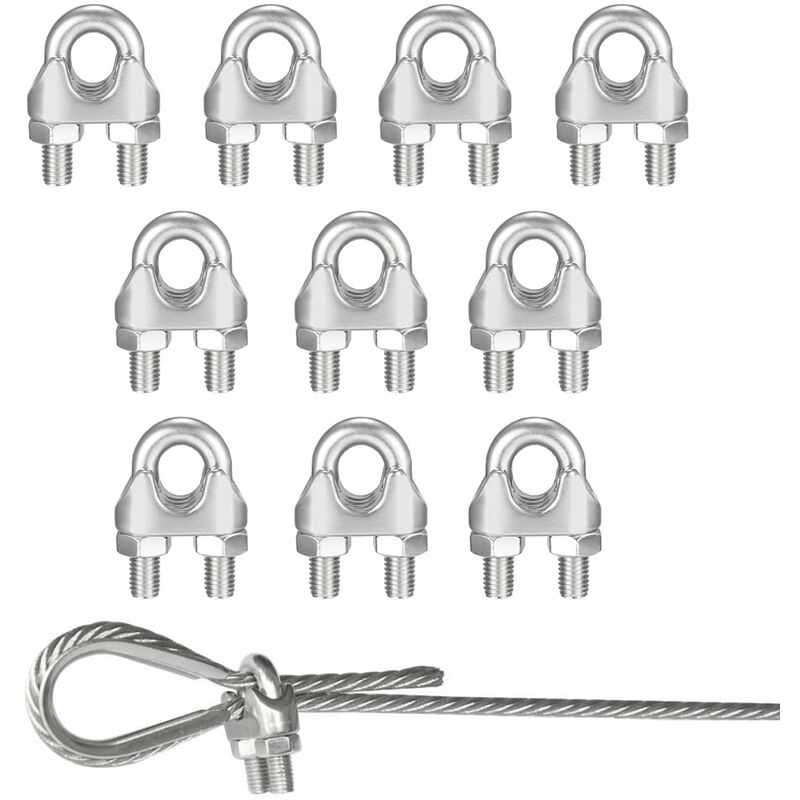 Colore come mostrato Dimensioni: 2,2 x 2 x 0,9 cm Peso: 20 grammi 【Alta qualità】 Morsetto per fune in acciaio inossidabile realizzato in acciaio inossidabile 304 di alta qualità. Non è facile da ossidare, quindi può essere esposto all'ambiente complesso. È spesso e resistente, non arrugginisce, resistente agli acidi, resistente alla corrosione. 【Per fune metallica da 4 mm】 - Il morsetto M4 è adatto per fune metallica da 4 mm, è robusto e con il dado di alta qualità può fissare saldamente la fune metallica. 【FACILE DA USARE】 - Una clip per fune metallica è composta da un bullone a forma di U, una sella forgiata e due dadi. Inserire i due strati di fune metallica nella vite a forma di U e nel morsetto. La linea antiscivolo al centro della sella può aumentare efficacemente l'attrito. 【SOLIDO E SICURO】- La rotazione solida di serraggio non si verifica fenomeno di slittamento, il bullone lo rende più stretto e più stabile, elimina il potenziale rischio per la sicurezza durante l'uso.