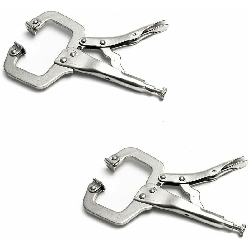 Set di 2 morsetti a C - Dimensioni: 28,5 cm. Basta girare la vite per regolare la pressione. Grilletto protetto per sgancio rapido. < p > Cuscinetti girevoli sulle punte dei morsetti per superfici irregolari e angoli strani , costruiti per durare. Si inclinano sia in avanti che in avanti;