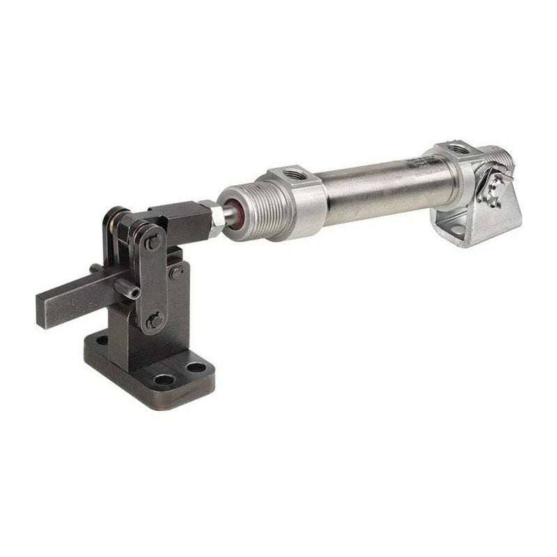 Pesante · con attacco cilindro orizzontale · con smorzamento dello strato finale regolabile · con pistone magnetico per query di livello finale · Acciaio temperato brunito · i bulloni portanti senza manutenzione che corrono in boccole in bronzo sono temperati, macinati e montati con anelli di fissaggio · il tensionatore è pronto per il collegamento ed è costituito da: - Elemento meccanico n. 6815C - Cilindro pneumatico FESTO a doppia azione - Blocco cuscinetto I cilindri sono conformi a DIN ISO 6432. Applicazione: Questi tensionatori pneumatici sono progettati in qualità di ingegneria meccanica e sono adatti per l'installazione in linee di trasferimento e macchine speciali. La posizione di apertura e bloccaggio del tensionatore può essere monitorata elettricamente e quindi integrata nei processi di produzione automatici. Altre caratteristiche tecniche: · C:14mm · D: 7mm · F4: 0,8 kN · Pistone Ø: 20mm · G: 35mm · L: 28mm · O:M8 · a*: 9° · F5: 0,19 kN · F:9mm · Corsa del pistone: 40mm ·