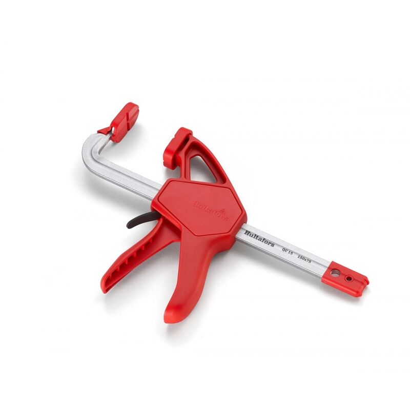 Morsetto Rapido compatto con pressione di serraggio fino a 90 kg - Hultafors QC Morsetto compatto e facile da utilizzare con una mano sola, dotato di pressione di serraggio fino a 90 kg. Guida in acciaio forgiato in un pezzo unico, con ganasce sottili per operare anche nelle fessure Ganasce con rivestimento in gomma per proteggere le superfici e distribuire equamente la pressione di serraggio Telaio rinforzato e testa ribaltabile per aggancio sia esterno che interno Scatola in nylon rinforzato in fiberglass Art. Apertura Profondità Peso Dimensioni Barra 520153 150 mm 75 mm 600 g 20 x 6 mm 520303 300 mm 75 mm 710 g 20 x 6 mm 520453 450 mm 75 mm 850 g 20 x 6 mm 520603 600 mm 75 mm 980 g 20 x 6 mm