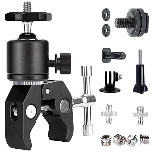 Morsetto per treppiedi, super morsetto, testa a sfera per flash, testa jinhuaxin con adattatore filettato da 1/4" 3/8" per fotocamere, flash, treppiede, monitor LCD/DV, luci LED (morsetto 2)