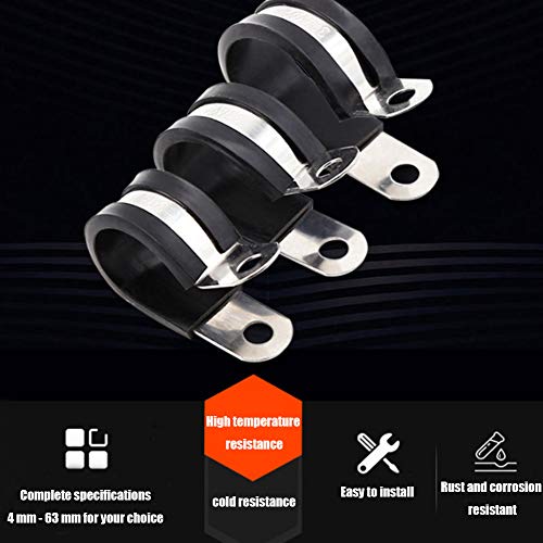 Morsetto Per Tubo,Fascette Stringitubo Foderato in Gomma P Clips,Morsetto Per Cavi in Acciaio Inoxper Tubo, Tubo O Filo,15Mm Larghezza Di Banda(30 Pezzi),63mm