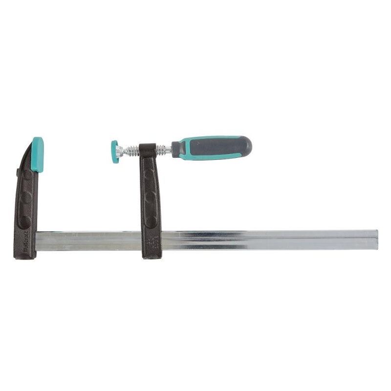 Wolfcraft 1 Morsetto a vite PRO 400, 120-450 Per un serraggio potente - ideale per progetti ambiziosi di lavorazione del legno e costruzione di mobili guida a profilo cavo per l'impiego sicuro in caso di forze di torsione elevate bracci di serraggio in ghisa temprata di alta qualità per una lunga durata, soprattutto se utilizzati con forze di serraggio elevate Impugnatura bicomponente ergonomica con zona morbida per lavorare in modo pratico e sicuro Descrizione del prodotto Il potente morsetto a vite con forza di serraggio 400 kg è ideale per i progetti con legno e mobili, ad es. per la costruzione di una tettoia per auto. È dotato di una robusta guida a profilo cavo che lo rende adatto all'impiego con forze di torsione elevate. Tramite la piastra di pressione mobile viene trasferita la forza sul pezzo all'angolazione ideale. Con le protezioni gommate sulla ganascia di serraggio e la piastra di pressione il trasferimento della forza non danneggia minimamente il pezzo. Le protezioni