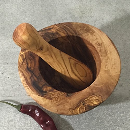 Set mortaio e pestello in legno d' ulivo naturale al 100%