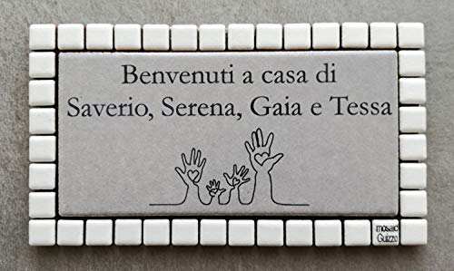 Mosaici Guizzo Targhetta in Ceramica incisa+Cornice_Tema Famiglia