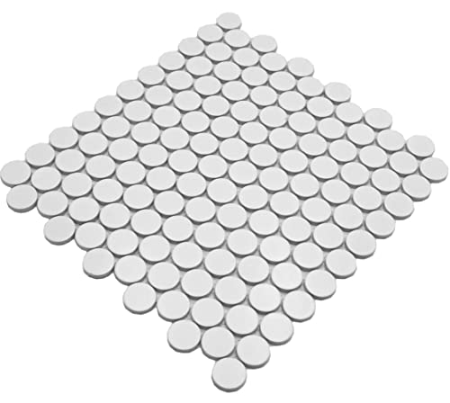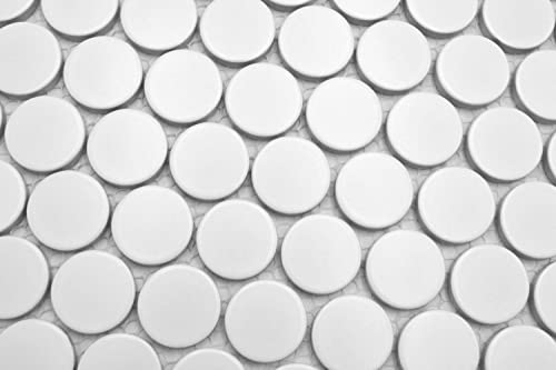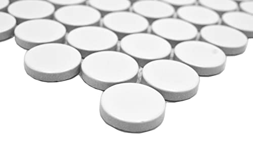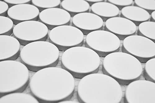 Mosaico bianco, mosaico a bottoni, effetto rotondo, in ceramica, opaco, rotondo, parete, pavimento, cucina, bagno, doccia