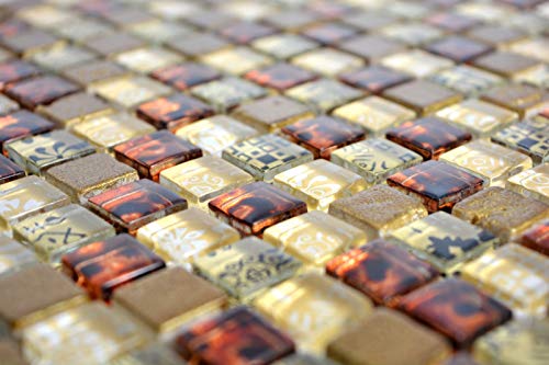 Piastrelle a mosaico traslucide, beige, effetto cristallo, effetto resina, beige e rosso, MOS92-1212