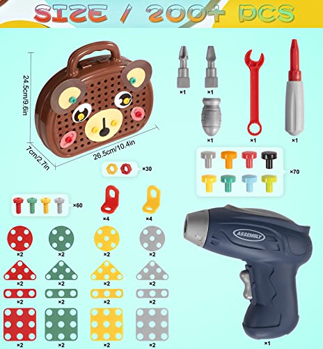 205PCS Giocattoli da costruzione - Questo set di puzzle a mosaico contiene trapani elettrici, puzzle grafici di forme diverse, dadi e bulloni, cacciaviti, chiavi inglesi e altri strumenti. Tutti confezionati in una cassetta degli attrezzi, in modo che i bambini possano portarli ovunque!