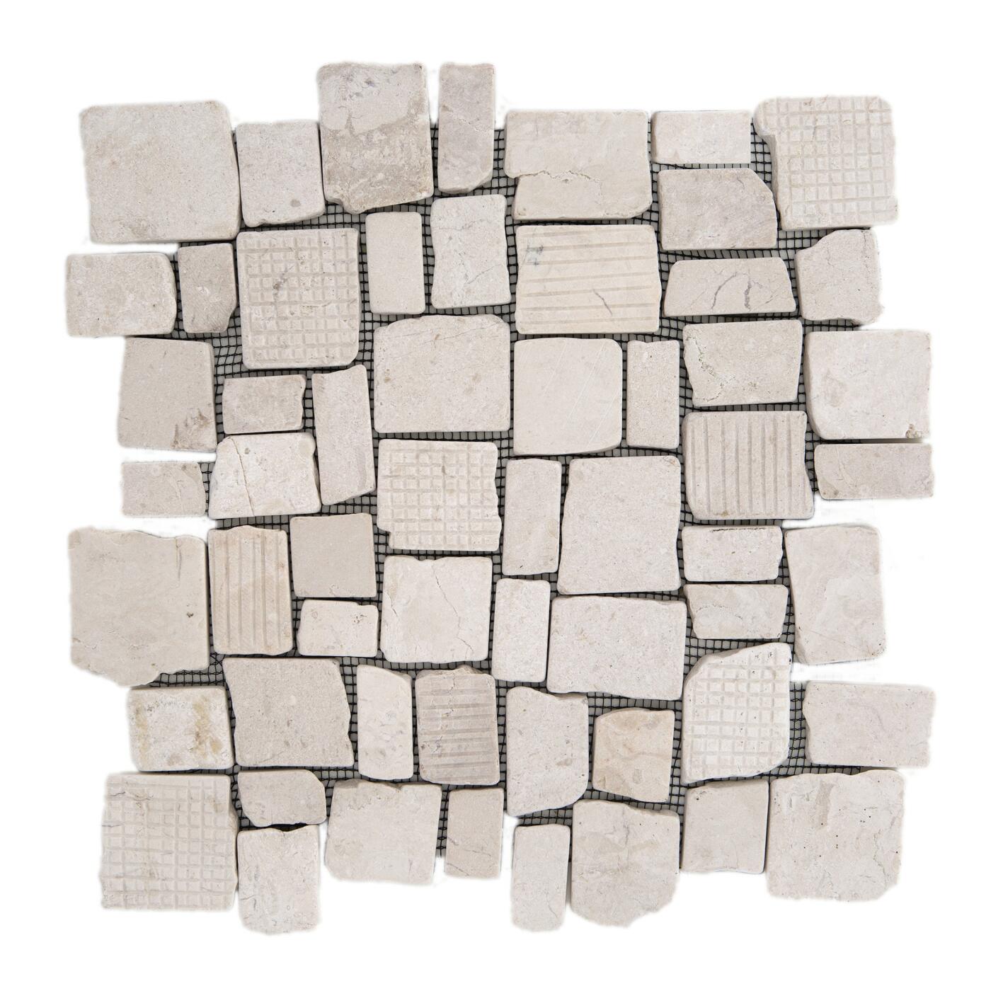Piastrella decorativa in pietra naturale, finitura burattata opaca con motivo ornamentale. Confezione 0,9 mq. Ideale per uso interno ed esterno. Ideale per decorare pavimenti e rivestimenti. Possono variare i colori e le tonalità grazie alla naturale bellezza della pietra che la rende unica nel suo genere