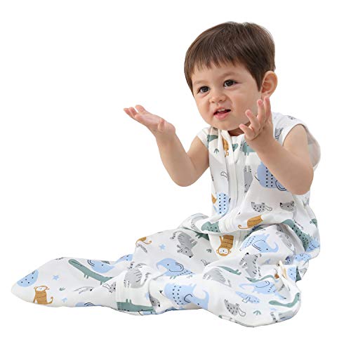 Mosebears Sacco nanna estivo per bambini, 0,5 Tog, 100% cotone, traspirante, (paradiso di animali, M (6-12 mesi)