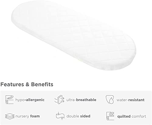 Moses Basket,Materasso in schiuma di forma ovale, extra profonda, impermeabile, spesso, adatto per Mamas & Papas, culla da viaggio, per carrozzina, con rivestimento trapuntato rimovibile (73x35x4.5)
