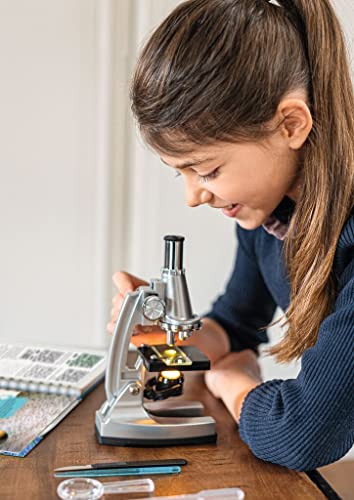 Perfetto per i principianti ✓ Numerosi accessori come slicottero di sicurezza, supporti resistenti, piastre di copertura in vetro e istruzioni per bambini completano il set microscopio