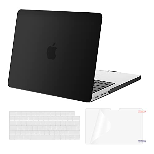 MOSISO Case Compatible con MacBook Pro 14 2023 2022 2021 M2 A2779 A2442 M1 Pro/M1 Max con Liquid Retina XDR Display Touch ID,Plastica Custodia Rigida&Tastiera Cover&Proteggi Schermo,Nero