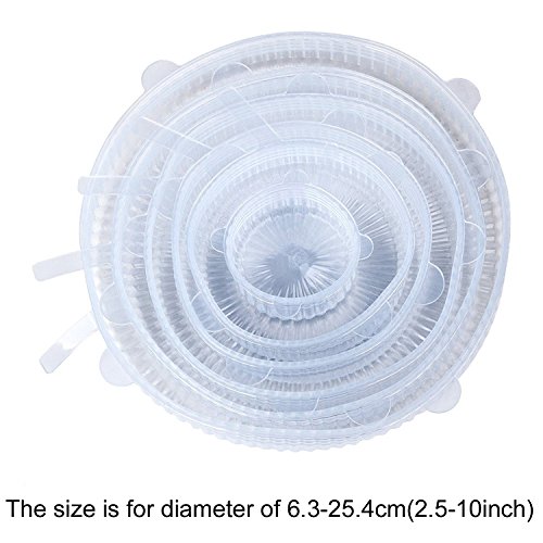 Facile e comodo, in silicone flessibile e versatile da utilizzare - Questi Stretch i coperchi sono perfetti per il diritto che il coperchio misura il vostro ciotole, vasi, contenitori, Mason Jars, tazze o lattine. Questi coperchi in silicone super stretch si allunga in quasi il 30% delle dimensioni originali per adattarsi a qualsiasi forma ciotola o contenitori. Silicone Storage coperture sono disponibili in 6 misure, in modo da poter scegliere la misura giusta per ovale, rettangolare, rotondo e quadrato articoli.