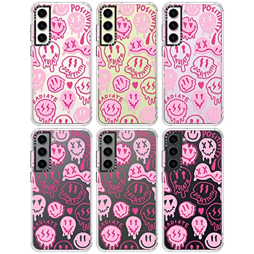 MOSNOVO Clear Cover Samsung Galaxy S23, Assorbimento degli Urti, Custodia Sottile Morbida TPU paraurti in Trasparente Copertura del Telefono - Rosa gocciolante sorrisi positività irradiano il viso
