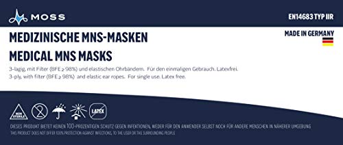 Moss EN14683 Paradenti tipo IIR, maschera chirurgica a 3 strati, 50 pezzi, Made in Germany