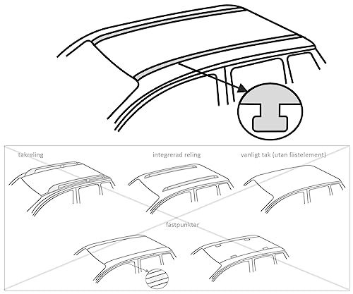 4 piedi (attacchi) - per tetti con scanalatura a T, portata 70 kg (o secondo le indicazioni del produttore dell'auto).