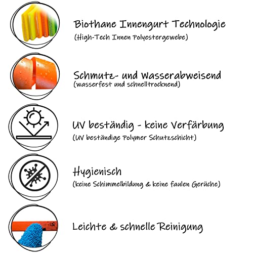 Indistruttibile, non stinge, muffe, flessibile, durevole, non assorbe acqua.