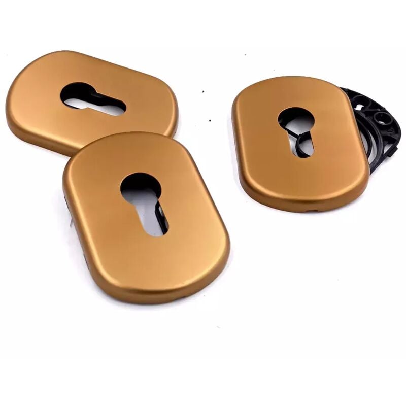 Mostrina DIERRE misura 61 x 85 mm. per cilindro europeo completa di supporti in plastica per il fissaggio. Finitura: Bronzata Misure: Altezza 85 mm Larghezza 61 mm Spessore 8 mm