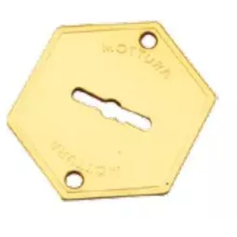 Mostrina ingresso chiave in ottone di misura 52x64 mm. Applicabile su serrature art. 20500/510/520/530/540/550. Finituta ottone.