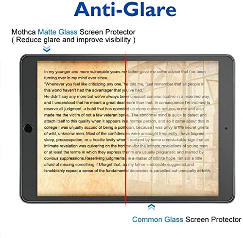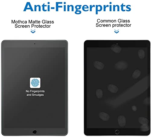 2. 【Liscio come la seta】La Mothca pellicola protettiva in vetro opaco per iPad 9a/8a/7a (2021/2020/2019, 10,2") fatta di vetro giapponese "AGC Glass" di altissima qualità. La perfetta superficie opaca ha la sensazione di un tocco di seta, resiste magicamente allo sporco, al sudore e alle fastidiose impronte digitali, resistenza all'attrito molto bassa anche per il sudore della mano.