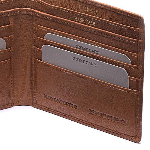 Bad Mother Fucker, Portafoglio in vera pelle di colore marrone chiaro, con portacarte di credito e scritte ricamate, approx. 11.5cm by 10cm by 1.5cm, Americano