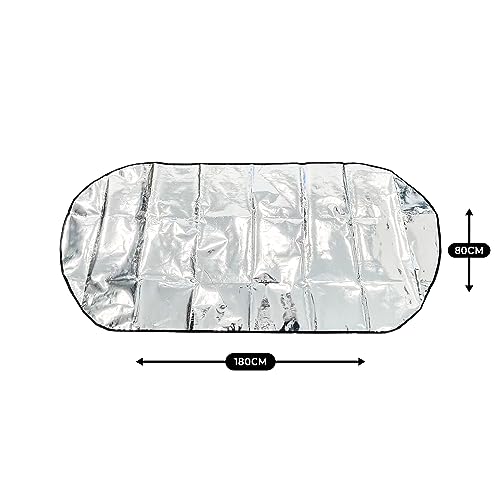 Copri parabrezza universale (non viene tagliato nella forma esatta del proprio parabrezza). Si prega di misurare il proprio parabrezza prima di procedere all'acquisto (180 x 80 cm).