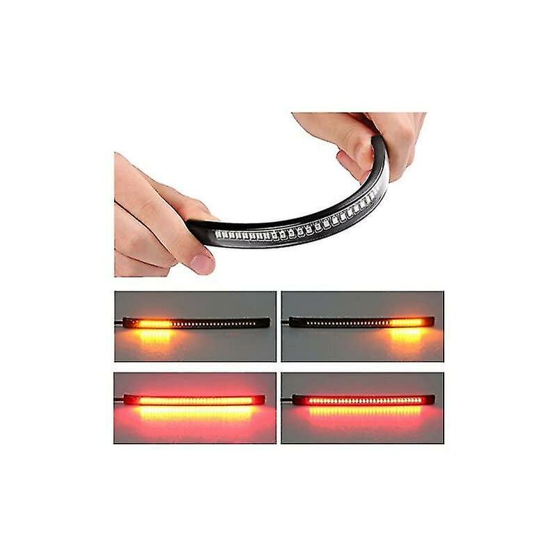 Prodotto di alta qualità: Bassa temperatura, basso consumo energetico e lunga durata. Impermeabile: Con un resistente alloggiamento in gomma PVC, le luci dei freni possono essere utilizzate sotto la pioggia. Ultra sottile e flessibile: Facile da montare su parafanghi curvi o da installare tra le aperture e praticamente invisibile. Più luminoso: Il chip LED 3528 super luminoso è 9 volte più luminoso delle lampadine a incandescenza originali. Facile da installare: Basta collegarlo e usarlo.