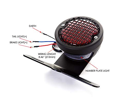 Moto Luce Stop Coda Guida Corsa LED Nero Opaco Vintage Retro Mesh Grill
