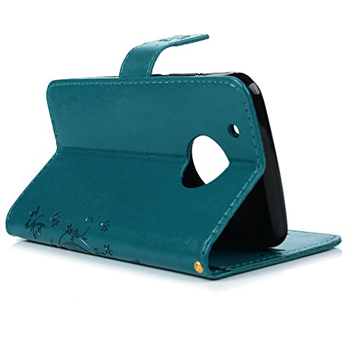 Moto G5 Plus del Lanveni, Motorola G5 Plus farfalle albero fiore impresso Chiusura magnetica in pelle PU con flessibile in TPU e copertura della fessura carta titolari e funzione cavalletto e cinghia da polso rimovibile custodia per Motorola XT1685/XT1686/XT1687 + 1 pennino, verde menta